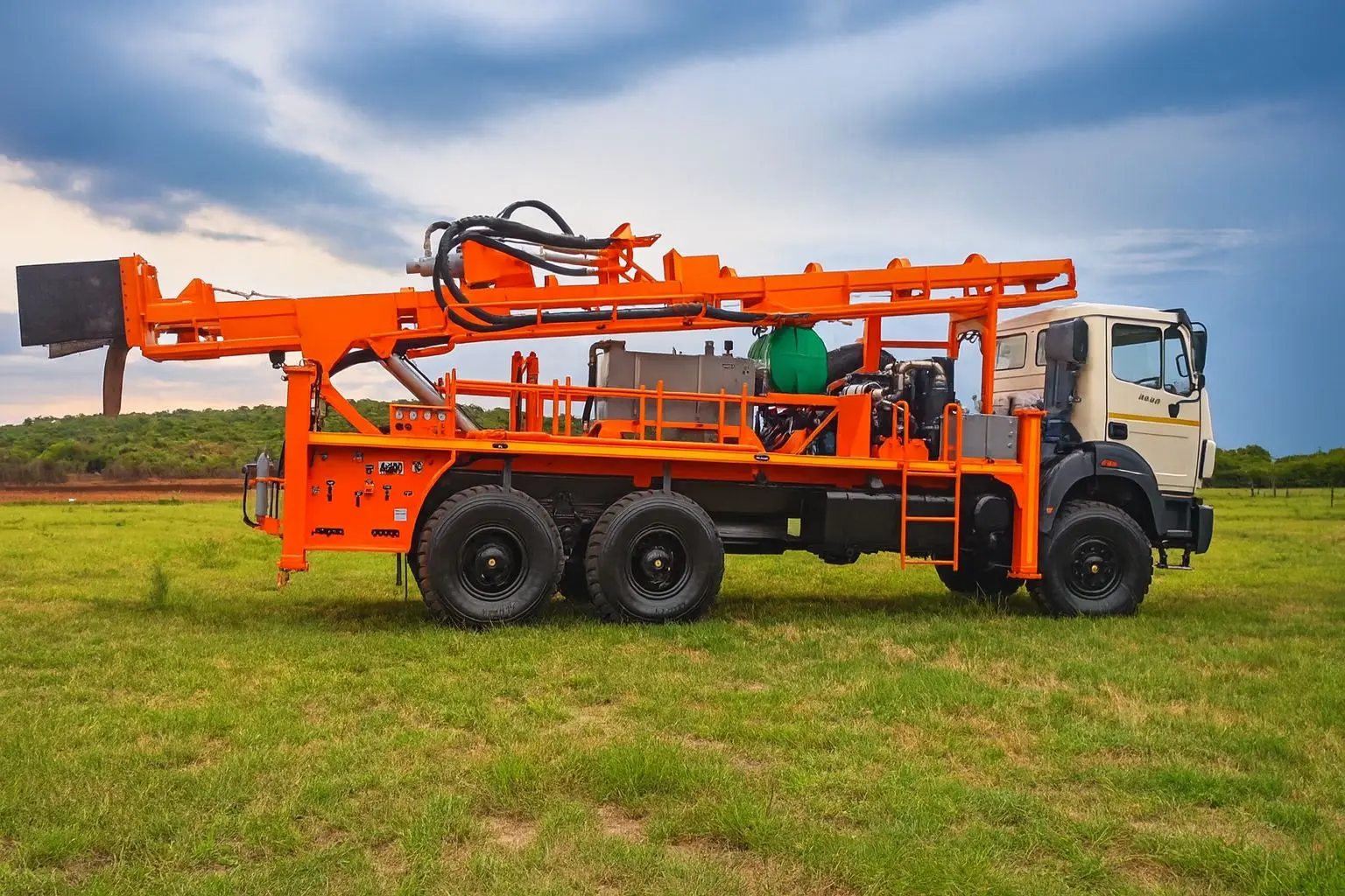 SAR100: Truck Mounted Borehole Drilling Rig designed for maximum mobility and efficiency. Rated for 200-meter deep production wells, capable of operating in compact or remote locations with consistent performance.